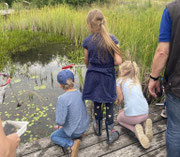 Im Juni drehte sich bei der NAJU Rotenburg alles rund um das Thema Wasserwelten. Ausgestattet mit Keschern, Lupengläsern und Bestimmungskarten ging es an den Teich im Mitmach- und Erlebnisgarten, wo die unterschiedlichen Tier- und Pflanzenarten bestimmt wurden. Das Highlight? Die NAJU entdeckte Molchlarven in unterschiedlichen Entwicklungsstadien!